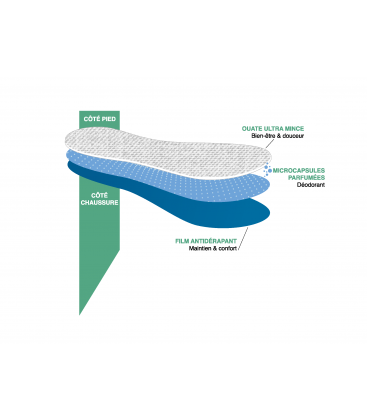 The ideal insole for healthy feet. You will love the feeling of your foot on the soft cotton. It also contains microcapsules that release a fresh, pleasant aroma and antibacterial agents as you walk. The insoles are performance guaranteed for a week. The little extra? These insoles are so thin that they will fit into all of your children’s shoes, even the narrowest! Sold in packs of 4 pairs for a month of healthy feet! To cut for sizes 23 to 35.