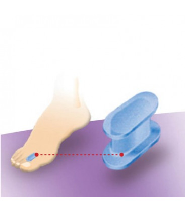 The retractor realigns the big toe in case of bunions and stops toes from overlapping. It also protects the skin between the toes, preventing callouses and the pain they cause. It stops the big toe overlapping onto the second toe and thus reduces pressure and rubbing.