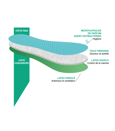 - Ces semelles contiennent des agents biocides : nitrate d’argent 1.5g/kg
